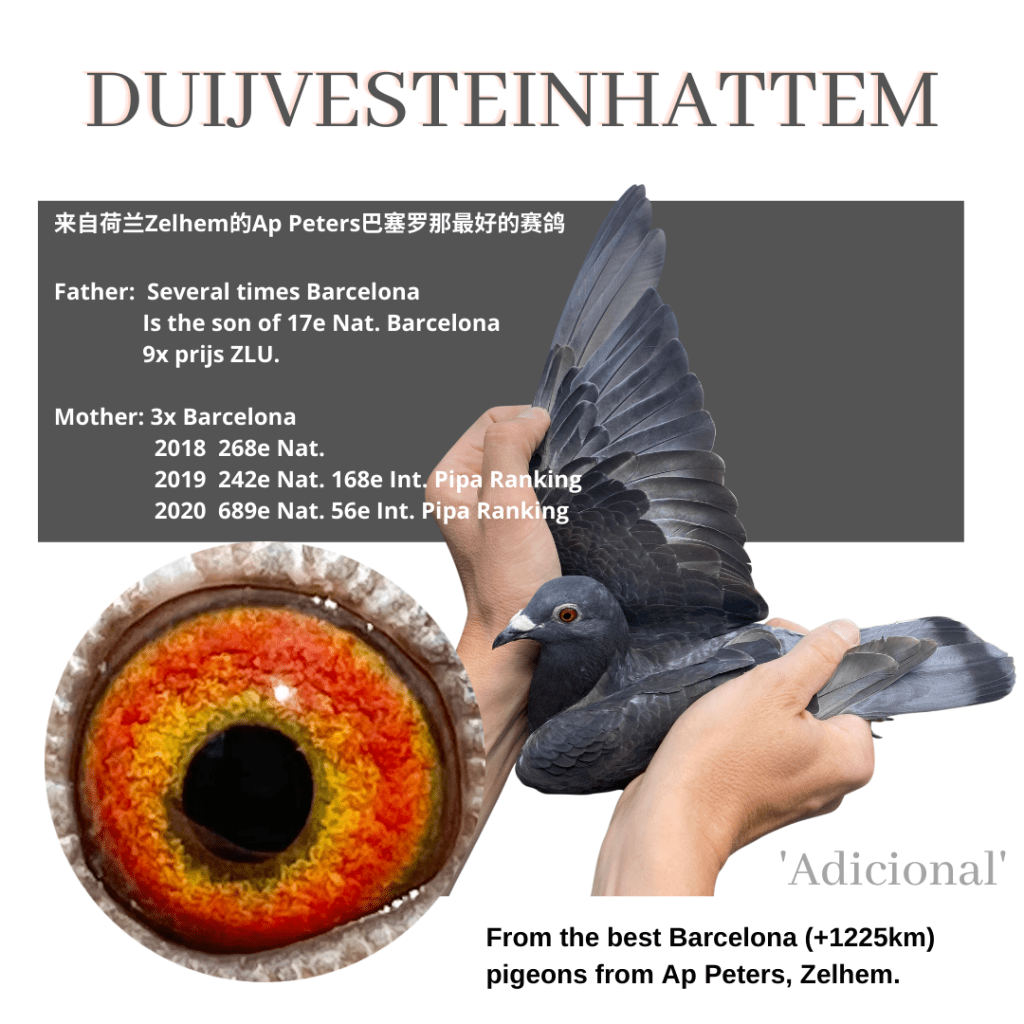 The father of the ‘Adicional’ is a perfectly build pigeon and came back three times fromBarcelona.