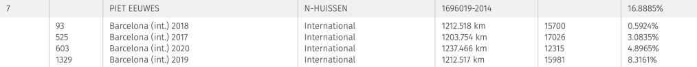 PIPA Ranking: Best Barcelona pigeon International over 4 years